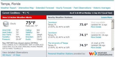 Em vez disso, a estação meteorológica em Tampa registrou ventos de 19 mph (35 km/h) no momento da aproximação máxima da tempestade:
