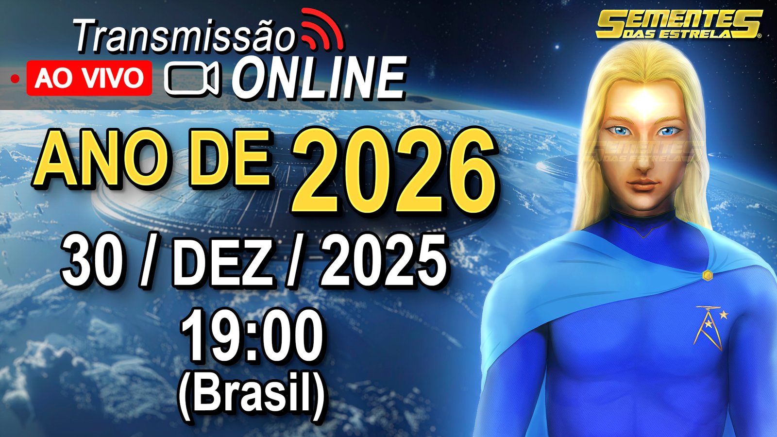 No dia 30 de Dezembro deste ano 2025, às 19 horas (horário de Brasília/DF, ou 22:00 UTC), Ashtar nos trará sua mensagem anual habitual ao vivo com título “Mensagem para o Ano de 2026”, através de Neva.